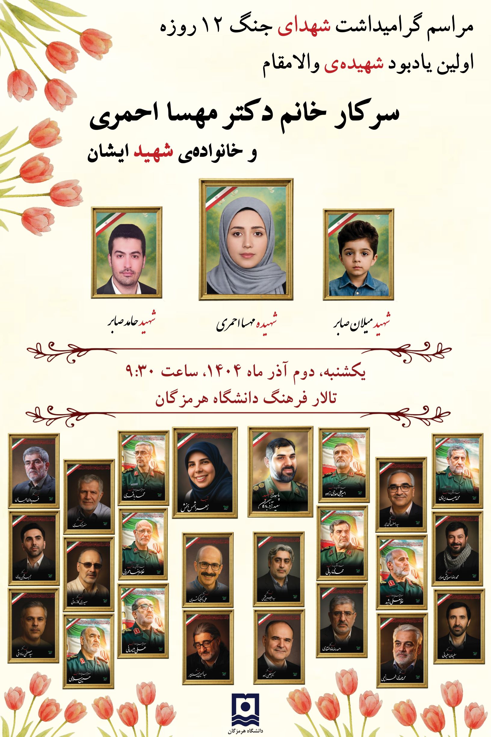 دعوت به حضور در آیین گرامیداشت شهدای جنگ ۱۲ روزه و اولین یادبود شهیده دکتر مهسا احمری در د...