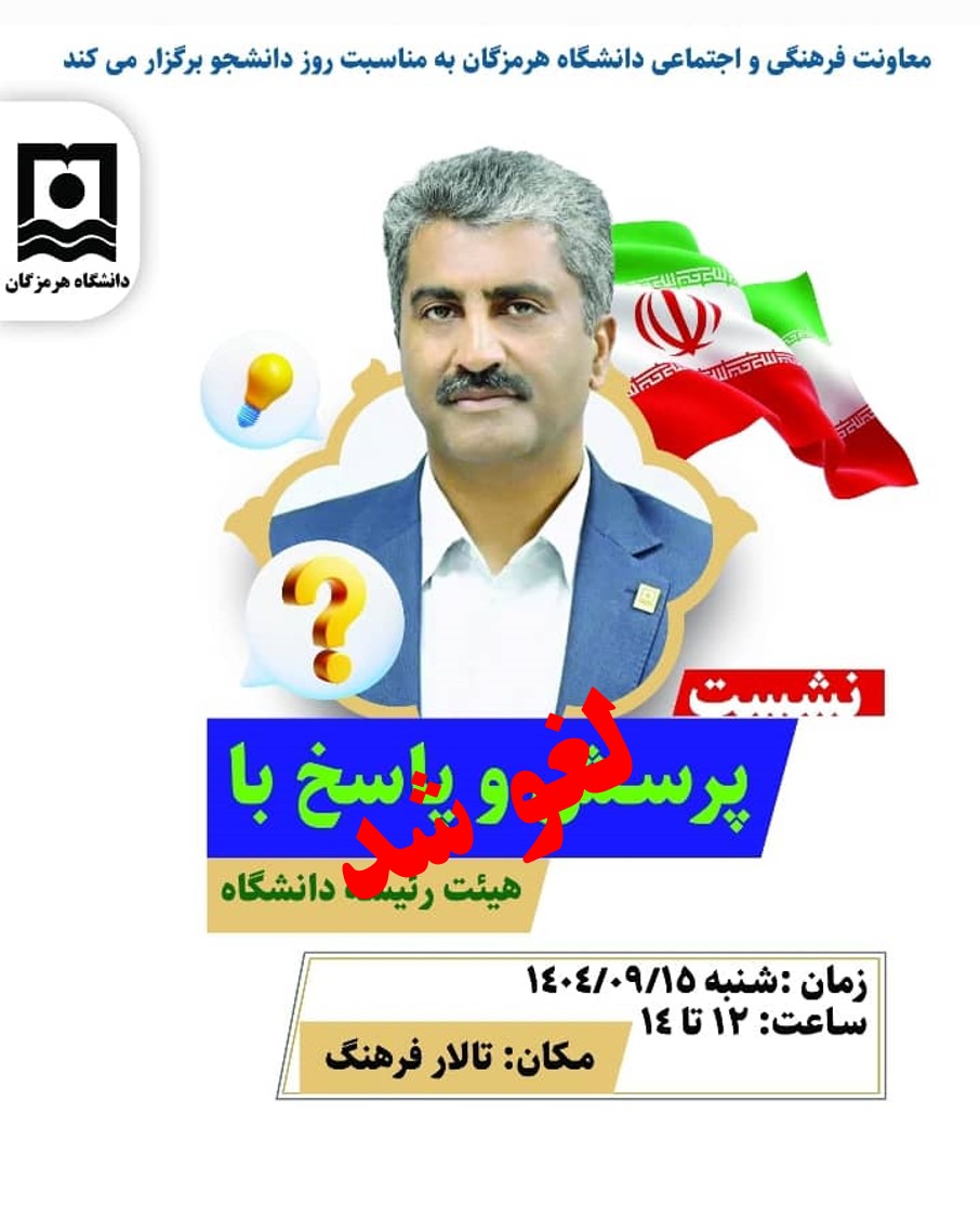 اطلاعیه لغو برگزاری نشست صمیمانه دانشجویان با هیئت‌رئیسه دانشگاه هرمزگان به مناسبت روز دانشجو