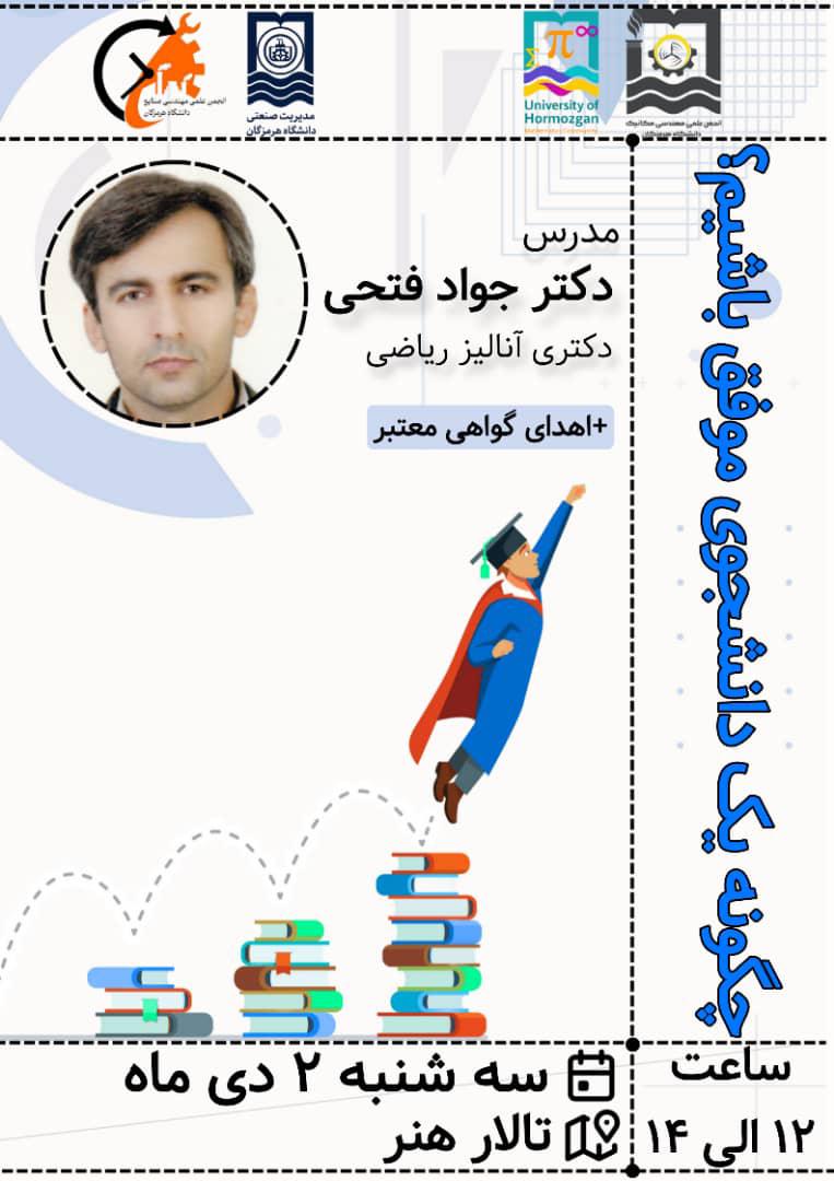 مدرس این کارگاه، دکتر جواد فتحی، عضو هیات علمی دانشگاه و دارای مدرک دکتری آنالیز ریاضی است که با بهره‌گیری از سوابق آموزشی و پژوهشی معتبر، به انتقال تجربیات علمی و کاربردی در حوزه موفقیت تحصیلی می‌پردازد.