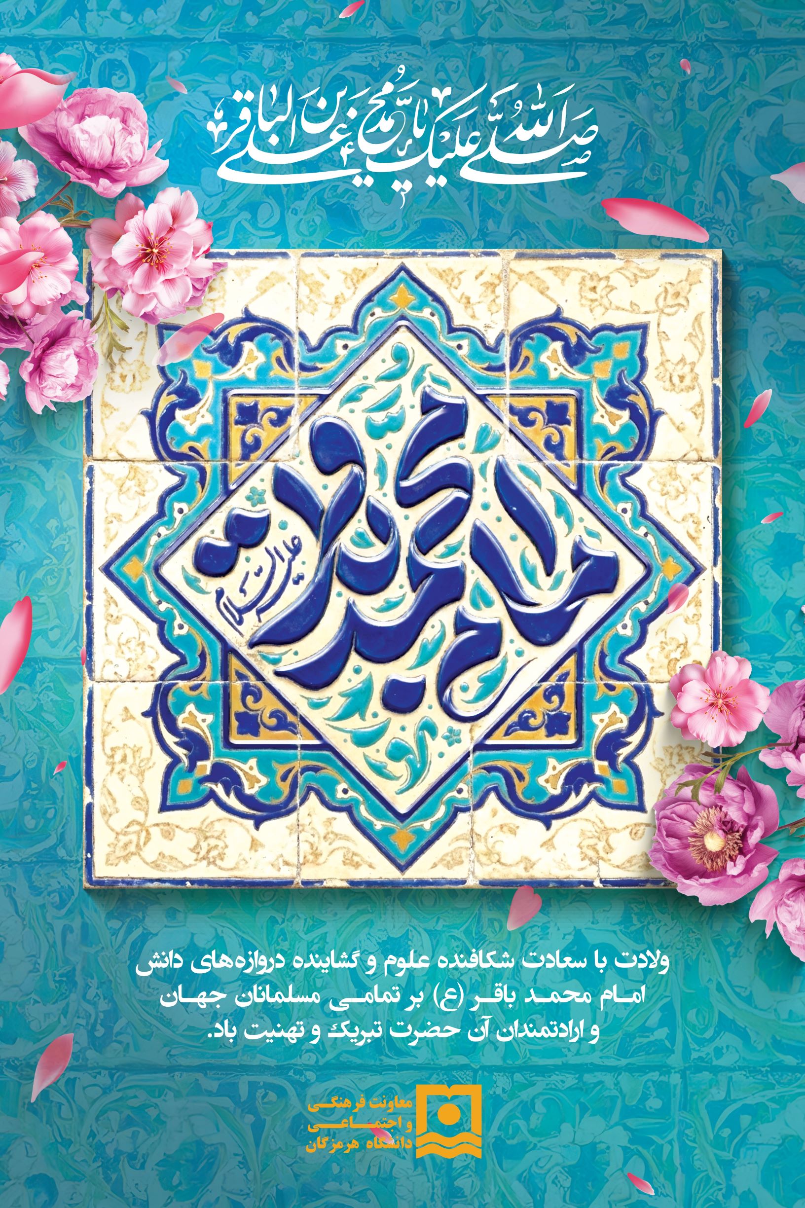 به مناسبت سالروز ولادت باسعادت امام محمدباقر علیه‌السلام، پنجمین امام شیعیان و ملقب به «باقرالعلوم»، هیئت دانشجویی محبین اهل‌بیت علیهم‌السلام دانشگاه هرمزگان، این روز فرخنده را به عموم دانشگاهیان، استادان فرهیخته و دانشجویان گرامی تبریک و تهنیت عرض می‌نماید.
