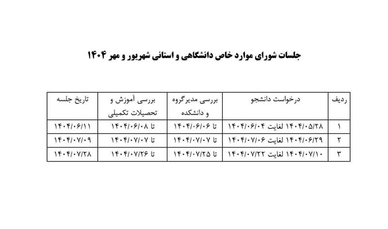 جلسات شورای موارد خاص دانشگاهی و استانی (تیر لغایت مهرماه)