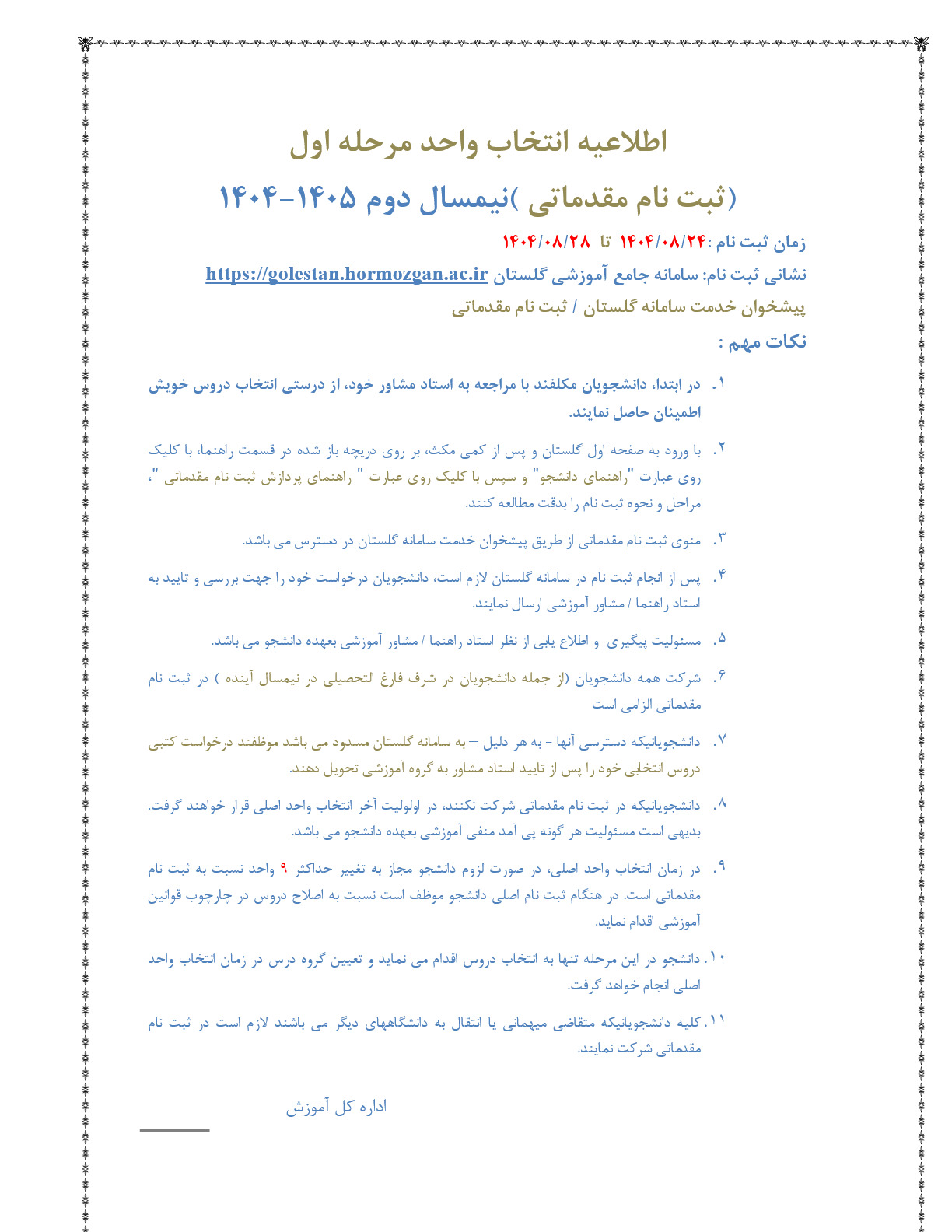 رفع نواقص ثبت نام دانشجویان کارشناسی ارشد