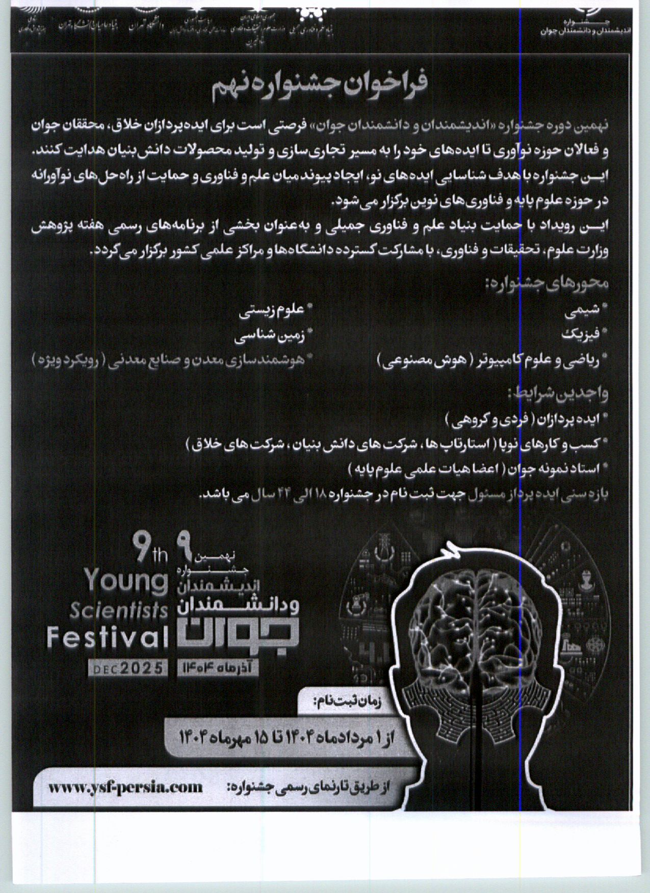تمدید زمان نهمین دوره جشنواره اندیشمندان و دانشمندان جوان در حوزه علوم پایه